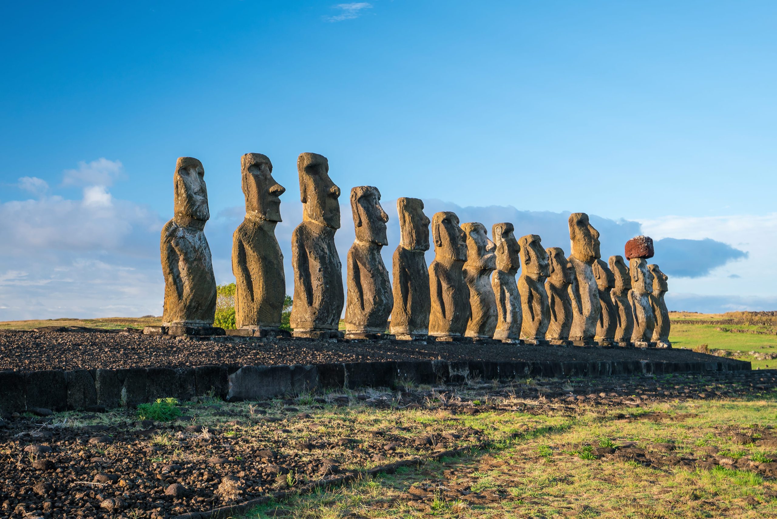 Descubriremos Rano Raraku, la cantera donde nacieron los Moai, un museo natural con casi 400 figuras en distintas etapas de construcción. Continuaremos hacia la icónica plataforma de Ahu Tongariki, con sus 15 gigantes restaurados frente al océano.